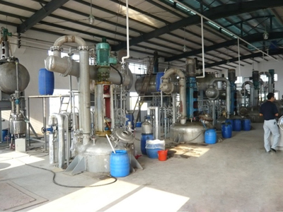 1、反應鍋 2、豎式分餾柱 3、豎式冷凝器 4、臥式冷凝器 |
